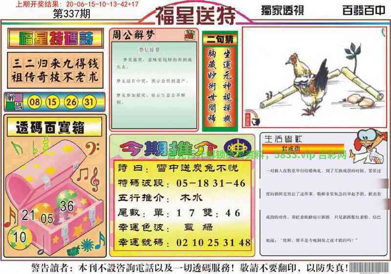 337期:吉凶两肖☣吉美+狗鼠】开:鸡09中