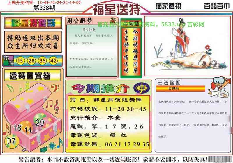 335期:吉凶两肖☣凶丑+鸡蛇】开:狗44中